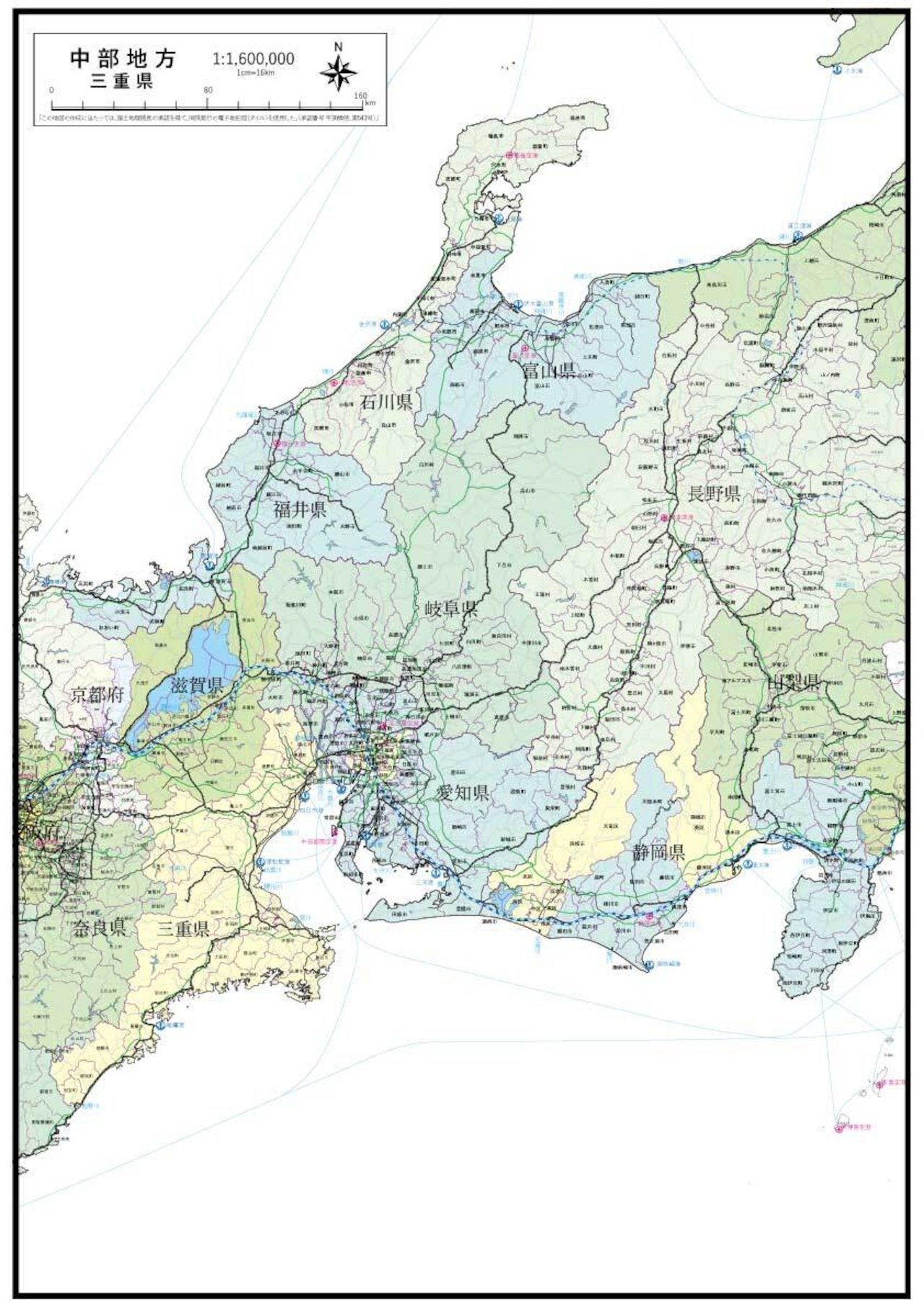 中部地方+三重県の地図データです。